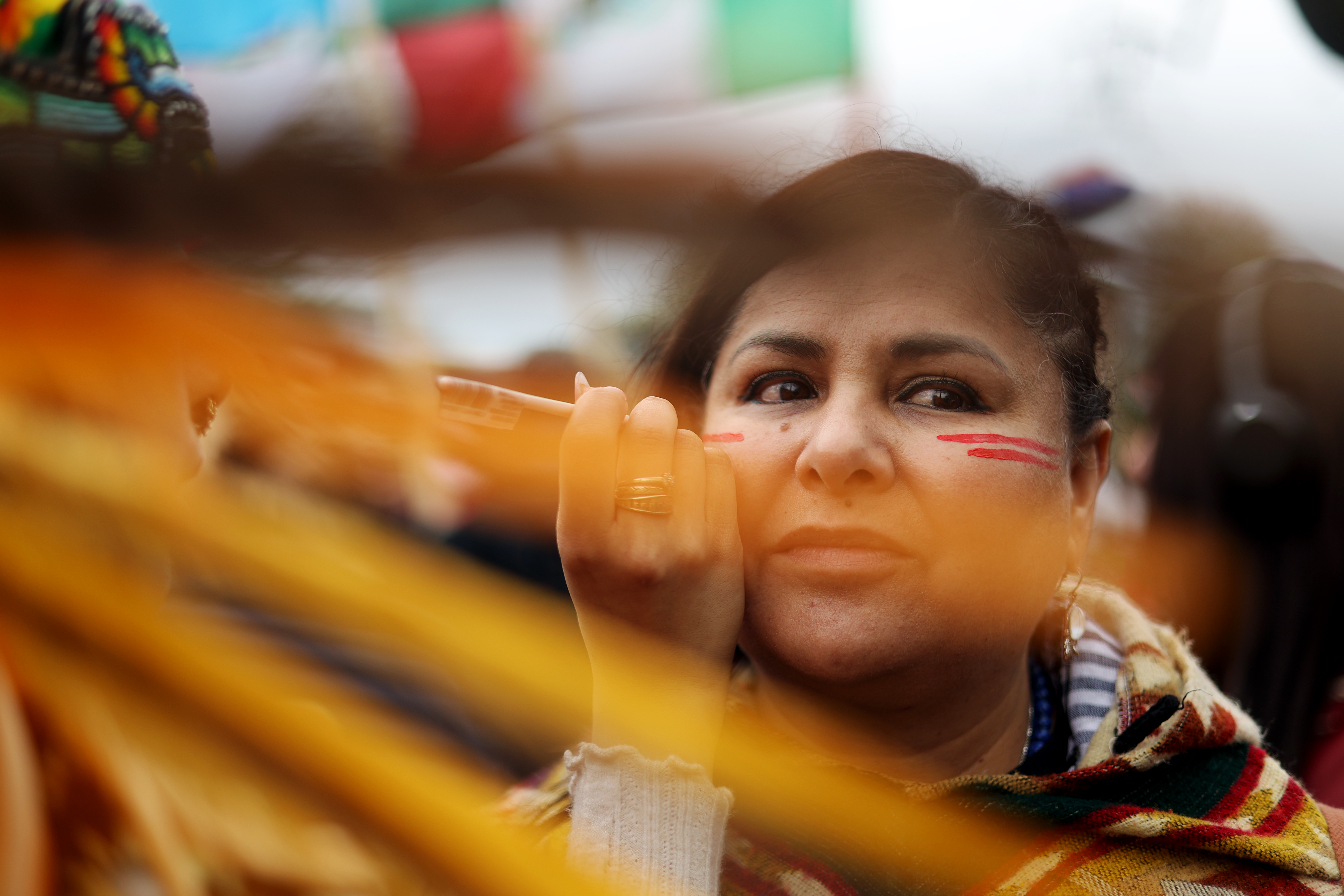 Ned Parsons, 10, left, and his mother, Kathy Parsons, gather at Union Park for the May Day march, May 1, 2025, honoring working people for International Workers’ Day, before marching to Grant Park. (Audrey Richardson/Chicago Tribune)Jaden Palacios, 7, gets war paint drawn on her face by Selena Sanchez, a member of the indigenous Mexica people, as hundreds gather at Union Park for the May Day march, May 1, 2025, honoring working people for International Workers’ Day, before marching to Grant Park. (Audrey Richardson/Chicago Tribune)Ollin Kuikatl Tekpatl, left, performs smudging, using medicine to “help harmonize the soul and spirit,” on Susana Huitron as hundreds gather at Union Park for the May Day march, May 1, 2025, honoring working people for International Workers’ Day, before marching to Grant Park. (Audrey Richardson/Chicago Tribune)