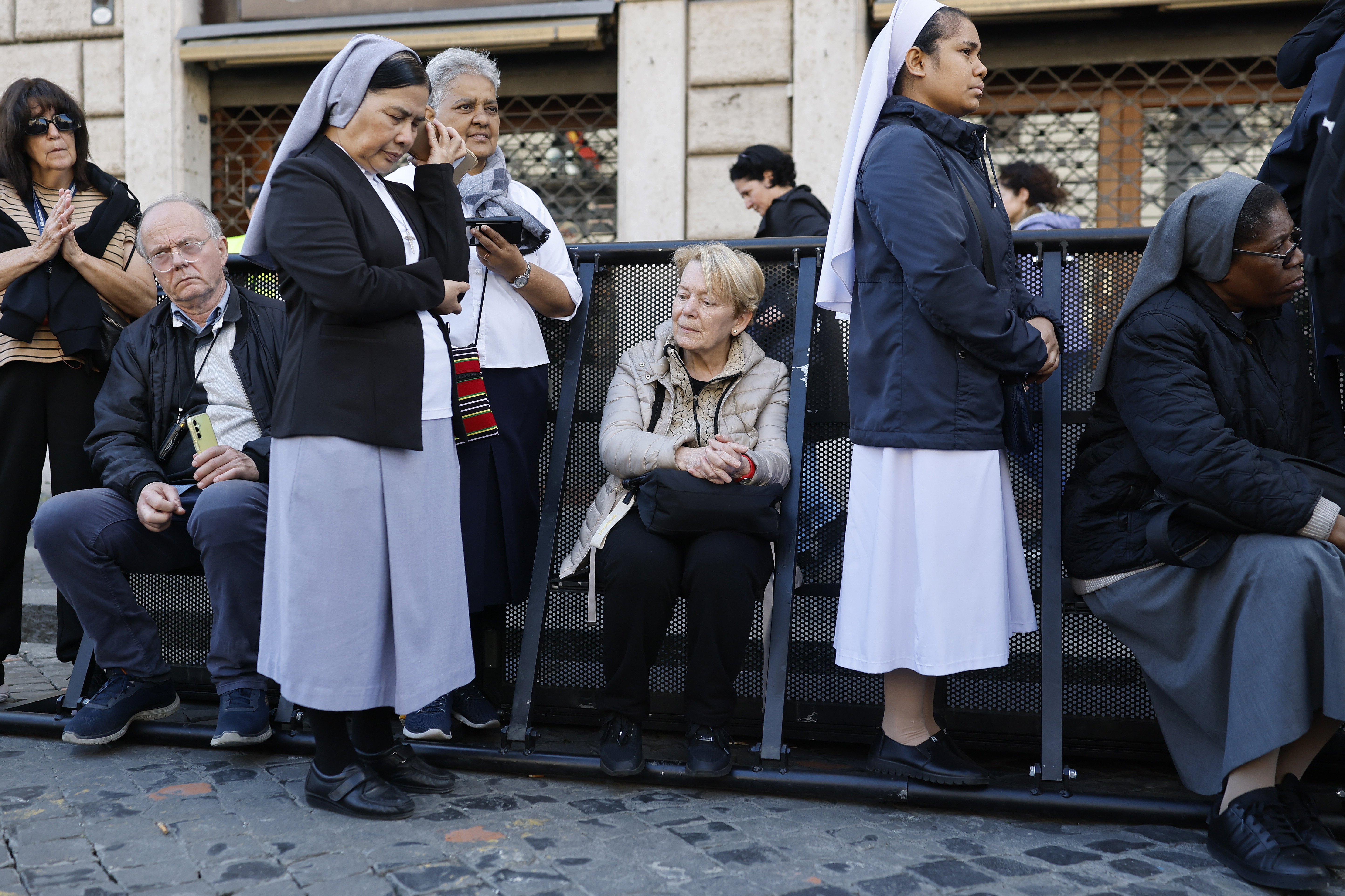 Nuns and faithfuls gather during the funeral of Pope Francis in Via della Conciliazione on April 26, 2025 in Rome, Italy. Pope Francis died on April 21st at the age of 88. (Mario Tama/Getty)Members of the clergy attend the funeral of Pope Francis in St. Peter’s Square on April 26, 2025 in Vatican City, Vatican. (Dan Kitwood/Getty)Pallbearers carry the coffin during the funeral of Pope Francis in St. Peter’s Square at the Vatican, April 26, 2025. (Markus Schreiber/AP)